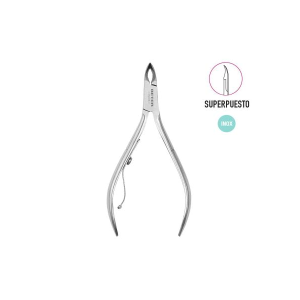 Alicate profesional de acero inoxidable diseñado para retirar cutículas y pieles muertas con precisión y seguridad. Su estructura resistente y afilada permite un cuidado eficaz de las uñas, logrando un acabado limpio y profesional desde casa o en el salón.