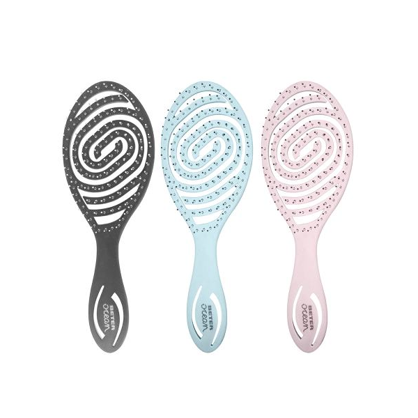 Cepillo diseñado para desenredar el cabello sin tirones ni dolor. Sus cerdas flexibles cuidan el cabello y reducen el quiebre, mientras que su diseño ergonómico facilita su uso diario. Ideal para todo tipo de cabello, dejándolo suave y manejable.