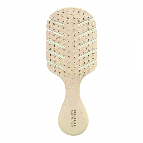 Cepillo compacto con fibras naturales, ideal para peinar y desenredar el cabello con suavidad. Su tamaño mini lo hace perfecto para llevar en el bolso o para retoques rápidos, cuidando el cabello y reduciendo el frizz.