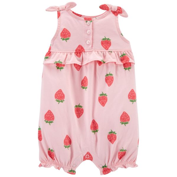 Elaborado en suave algodón con broches fáciles de usar en las piernas, este monito de frutillas es perfecto para tu dulce niña.