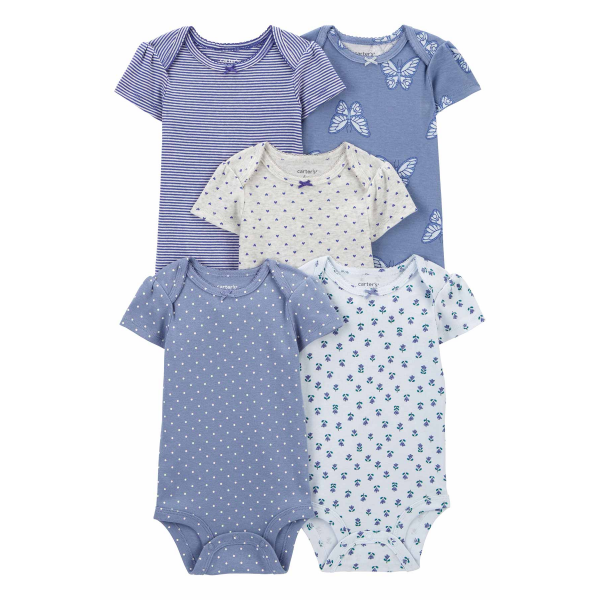 Set de 5 bodies estampados para bebés de 12 meses.