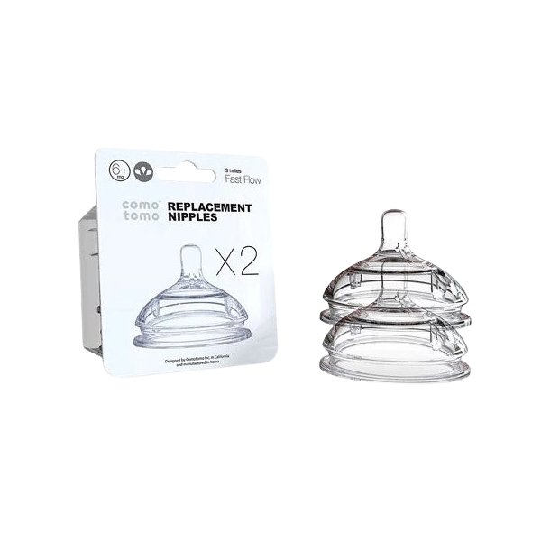 ComoTomo Tetina Flujo Rápido 6m+ x2 unidades es un conjunto de dos tetinas diseñadas específicamente para biberones de la marca ComoTomo, ideales para bebés de 6 meses en adelante. Estas tetinas están elaboradas para proporcionar un flujo de leche más rápido, adecuado para las necesidades alimenticias de los bebés mayores y más activos.