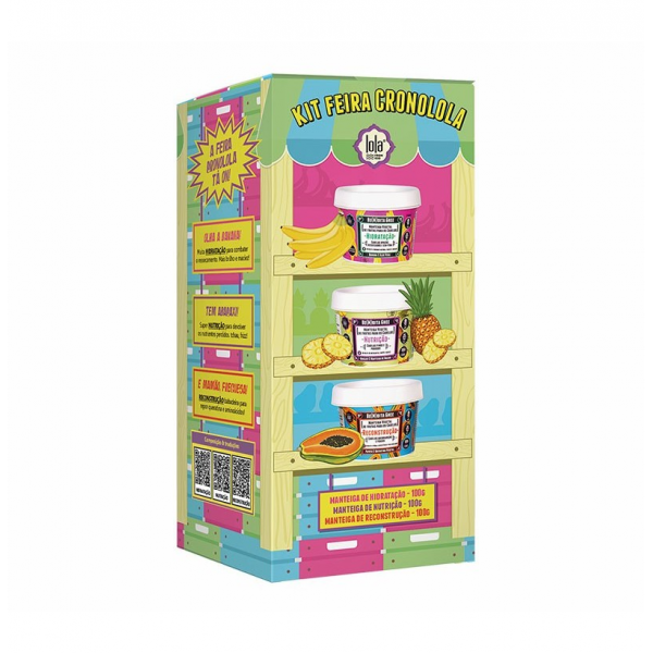 El Kit Cronolola – Cronograma Capilar, contiene 1 máscara bemditha ghee de 100gr de hidratación (banana), nutrición (piña) y reconstrucción (mamón). Ofrece un tratamiento intensivo para recuperar y revitalizar el cabello en casa. Incluye tres mantecas capilares veganas y orgánicas, inspiradas en la tradición india del ghee, que hidratan, nutren y reconstruyen los fios, dejándolos más fuertes, brillantes y saludables