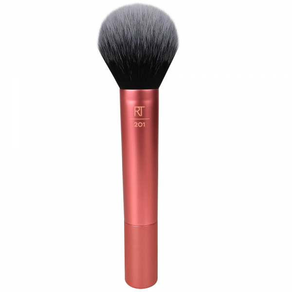 Brocha de rostro con cabezal grande y abombado, ideal para aplicar polvos sueltos o compactos, polvos bronceadores y polvos fijadores. Sus cerdas sintéticas UltraPlush (tipo taklon) son muy suaves, cruelty-free y se difuminan bien para lograr un acabado uniforme, mate y de alta definición.