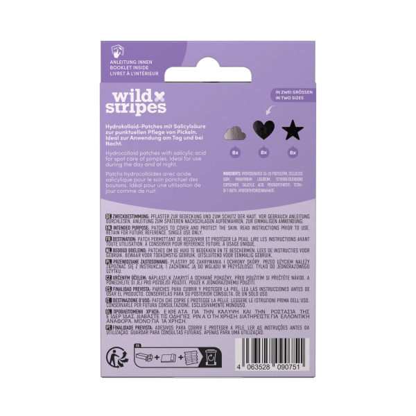 Tratamiento rápido y eficaz para combatir granos y espinillas. Los parches anti granos Wild Stripes están fabricados con tecnología hidrocoloide, que ayuda a absorber la suciedad, reducir la inflamación y proteger la piel mientras sana.